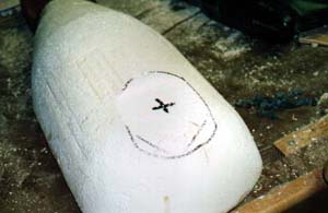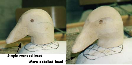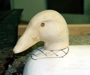 The finished detailed gunning head. This is still a rough bird with only minimal sanding done. Major tool marks are left. |