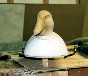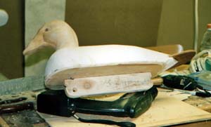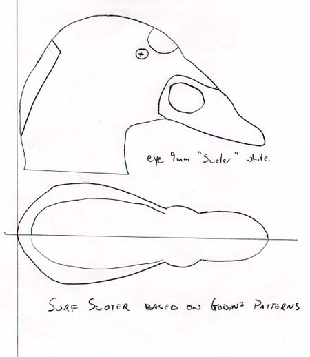 A front view of "Frankenscoter" If you get to float some Frankenscoter's of your own I would appreciate a picture. Eye installation and head patterns to follow after the pictures are developed. Basically the eye's are seated in epoxy putty. |