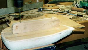 | Using the proper size and length screws glue the keel on and screw in place. After it's attached plug the countersunk holes with the appropriately sized plug. Sand flush. | |