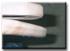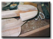Next comes the tail... Use your pattern as a base and subtract the profile from the overall width. Round the top and bottom and your ready for some more glue. **Note, the wooden tail is something I have not seen anyone else do, I started using it for durability reasons. Later on I show the traditional way which has a wire tail. |