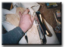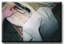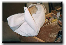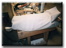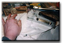 Time to start canvassing! To size the canvas you'll need stretch it over the widest part of the bird and give it 2 to 3" extra on both sides. it should also be long enought to go fro the bottom of the breast, along the profile past the tip of the tail. 36" wide canvas works fine for a goose with a resonable amount of waste. |