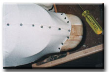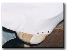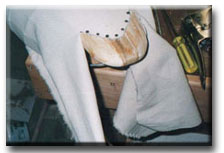 Usig carpet tacks, copper or brass are preferable, tack down the top of the tail. |