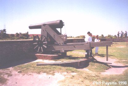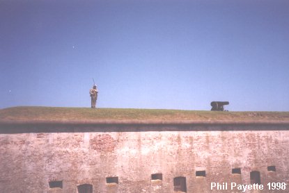 ![]() A re-enactor on guard duty by the cannon. |