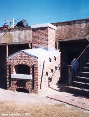 ![]() A reproduction of the Hot Shot Furnace. Cannon balls were loaded in from the rear, were heated super-hot, and retrieved from the front. These hot projectiles would then cause fires to wooden ships when hit. |