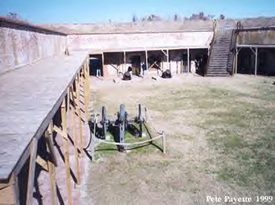 ![]() The parade ground of Fort Macon. The upper tier of the Inner Wall is undergoing restoration. |