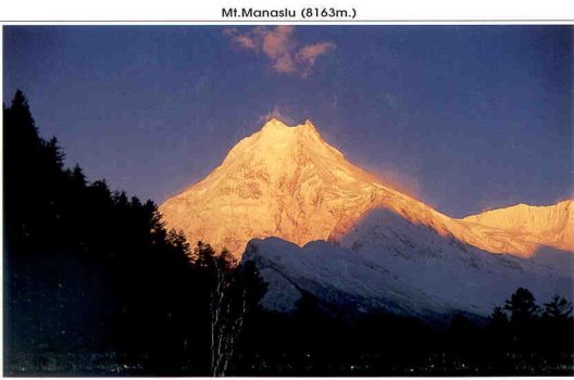 peak of Manaslu (8156) dissolve the fatigue, and the Buddhist prayer flags