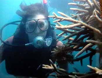 | Diver & Staghorn coral on Moltkie, a wreck in Jeffry Bay, Magnetic Island. |