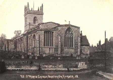 BARTON-upon HUMBER is a neat and well built market town, pleasantly situated on gently rising ground, near the south shore of the river Humber, where there is an ancient and much frequented ferry by steam and sailing packets to and from Hull, several times a day, the distance between the two places being about six miles; and here is also a ferry across the river to Hessle, on the opposite shore. Barton is about half a mile from the large Inn at the ferry, 6 miles S.W. of Hull, 34 miles N. by E. of Lincoln, and 167 miles N. of London. It is one of the polling places for the Parts of Lindsey, and is in two parishes, -St. Mary's and St. Peter's, which contain 6740 acres of land and had only 1709 inhabitants in 1801; but in 1811, they had increased to 2204; in 1821, to 2496; in 1831 to 3233; and in 1841, to 3466. The number of houses in 1841 was 1226, of which 39 were empty when the census was taken. The town has been much improved during the last ten years; and has many neat modern houses, and several broad butirregularly built streets: Its market held every Monday, is well supplied with corn and provisions, and once a fortnight it is a great cattle mart. Here is also an annual fair on Trinity Thursday for cattle, &c; and on the two following days pleasure. An hiring for servants is held on the Wednesday after old May Day. A great trade in corn, malt, and flour is carried on here. There are in and near the town, several corn mills; malt and lime kilns; brick and tile, and tan and fellmongers' yards; a coarse pottery; and manufactories of Paris-whiting, starch, rope, sail cloth, &c. Being at the northern termination of the Wolds, the country around Barton is fertile and picturesque; the hills abound in fine chalk-limestone, of which the best whiting is made; the lower grounds have excellent clay for bricks, tiles, and coarse earthen ware; and there is a fine stream of water flowing northward through the town to the Humber, diverted into a mill-race, and crossed in various places by bridges, mills, and ther buildings.