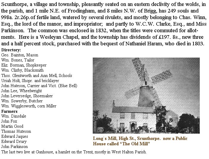 Scunthorpe, an extract from Whites Gazeteer and directory of Lincolnshire 1842