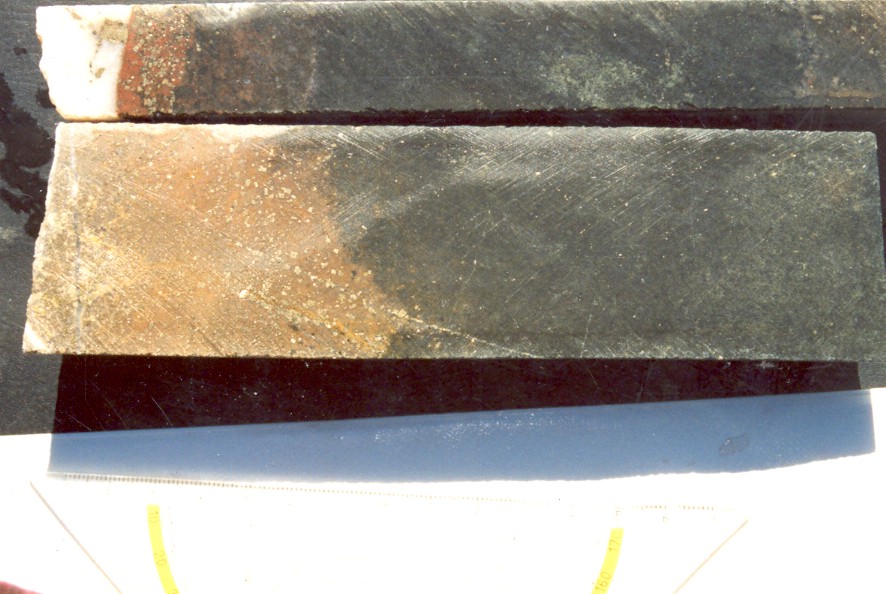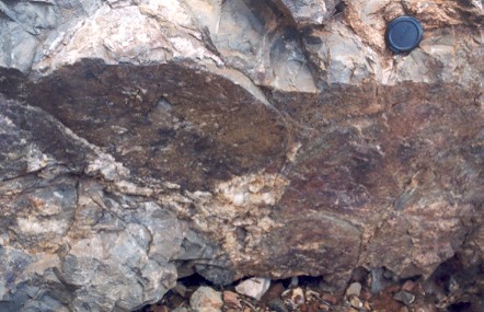 the lighter slightly dipping veins are mineralised |