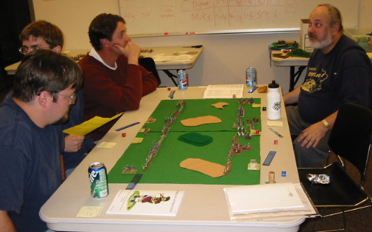 We hold four tournaments per year, or roughly one per season. If you want in, all you need is a pulse and an urge to wage war using lead soldiers. Drop us a line at numidian123@yahoo.com and we'll tell you when and where our next event is. |
