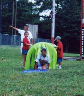 | Krista tries her luck at slip & slide |