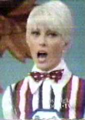 | Kathy Gale left "The Red Skelton Hour" in January, 1969 for a new variety show, "What's It All About World?". Having already been a featured musical guest on the Skelton show, there was probably little room for career growth there. "What's It All About World?" presented more varied opportunities. Kathy not only performed in the dance numbers but also appeared in the introduction of comedian Ron Prince on three occasions. She also appeared in three skits. The "Naval Buddies" sketch with Kathy, Dean Jones and Dennis Allen was one of the show's best. If you're a Kathy Gale fan, "What's It All About World?" is a must see. Unfortunately, the show failed to find an audience and was cancelled after a thirteen week run. During that brief history the program was reworked after the seventh show with "The Kevin Carlisle Three" becoming "The Kevin Carlisle Dancers", featuring an expanded lineup and more intense performances but a somewhat reduced screen presence in terms of minutes per show. The show's original intro segment, which featured "The Kevin Carlisle Three", was scrapped in favor of a vocal number featuring host Dean Jones. You can view video of Kathy Gale in action on "What's It All About World?" by clicking on any of the captures on your left. Since the cancellation of "What's It All About World?", Kevin Carlisle has choreographed "Solid Gold", many of Barry Manilow's shows, and many other television and stage shows. Lorene Yarnell, the third member of the company, formed the mime team of "Shields and Yarnell" with Robert Shields and has appeared in several movies and tv shows. Kathy Gale could be seen dancing on television in the 1970's on "The Captain And Tennille Show" (Kathy was also Assistant Choreographer on some of those shows), the 1977 Perry Como special "Music From Hollywood", with Jay Osmond on "Donny And Marie", and in the movie "Invisible Strangler". I'm still seeking information about Kathy's career between "What's It All About World?" and "The Captain And Tennille Show". If you have any information about any other shows, specials or movies on which Kathy performed please email me at the address on the left. |