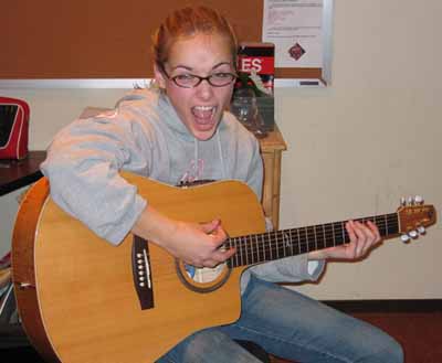 play the guitar. She just likes strumming and making lots of noise!