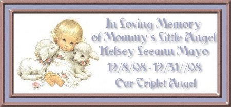 Click the Angel above to email me. Also, please sign our guestbook :) After signing, hit your back browser to return to Kelsey's site. Click the banner below to read my story. Thanks!