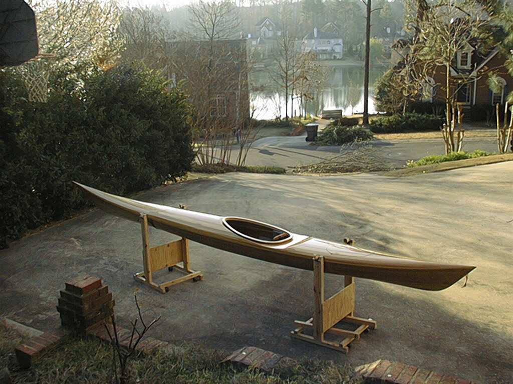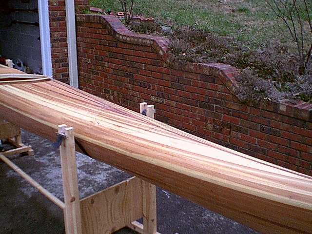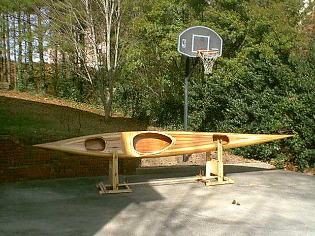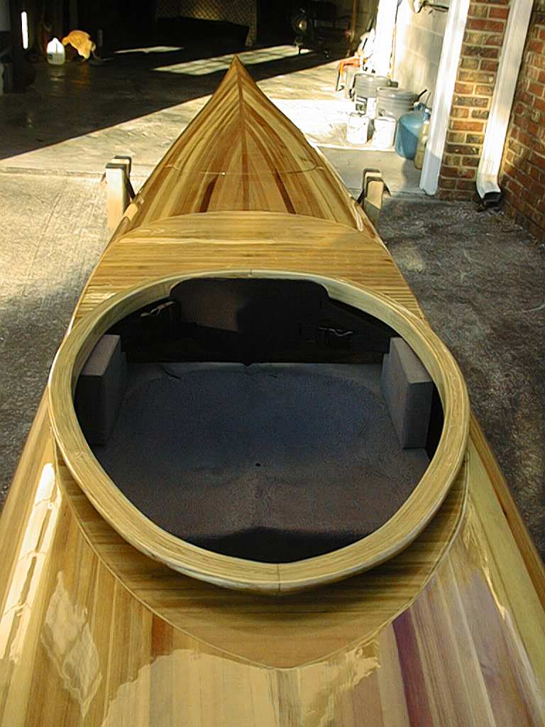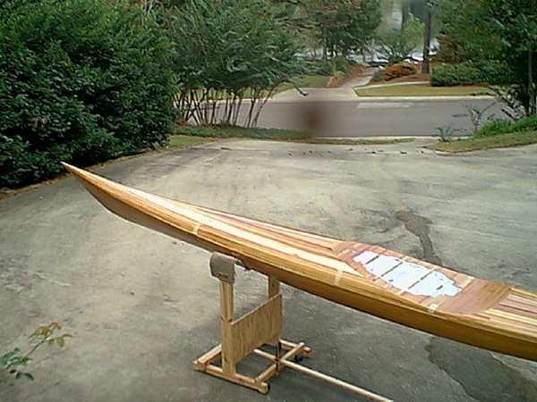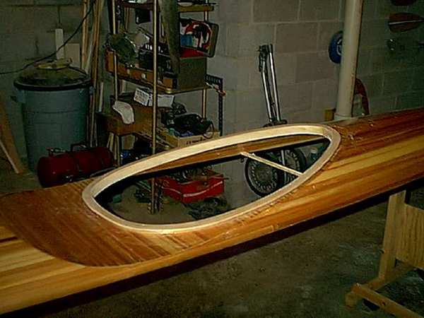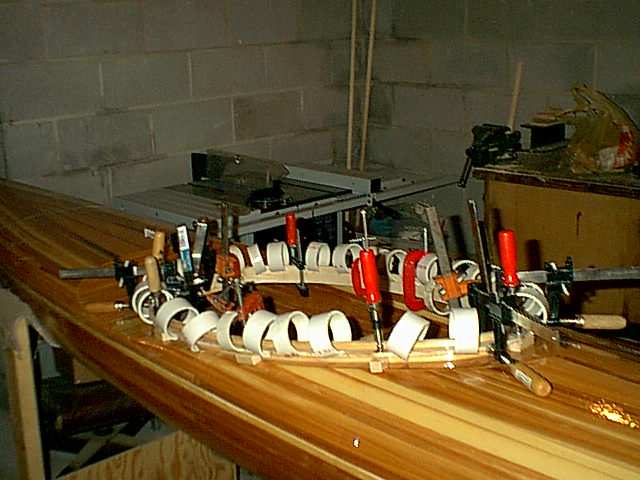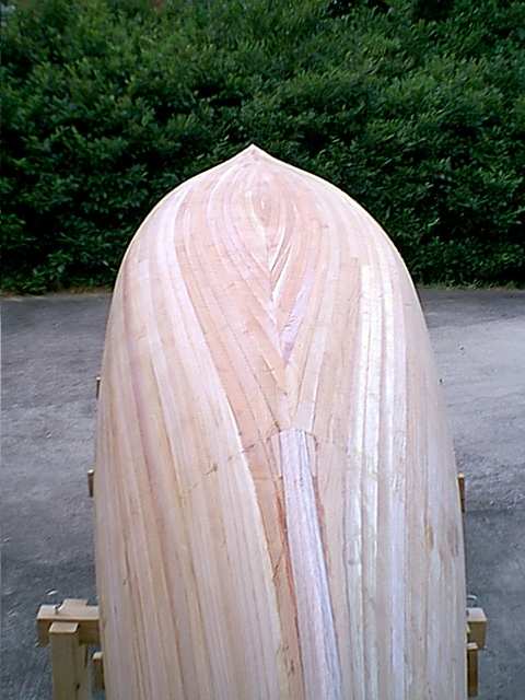 Deck: laying the cedar strips, sanding, and fiberglassing inside & out.