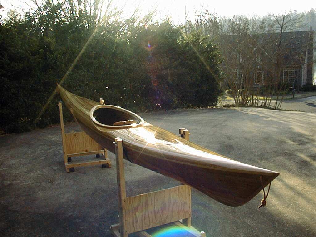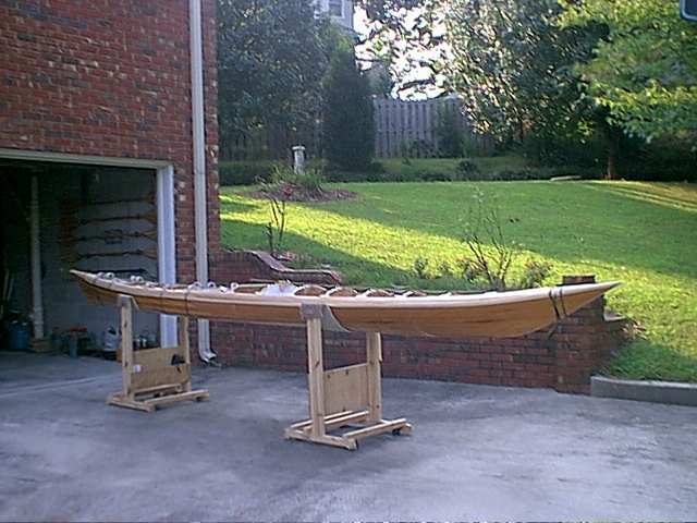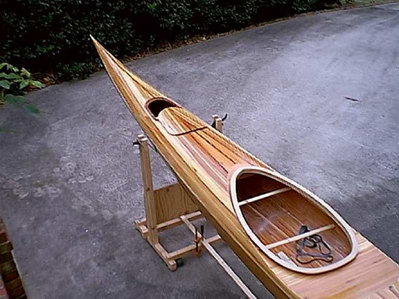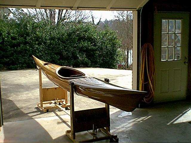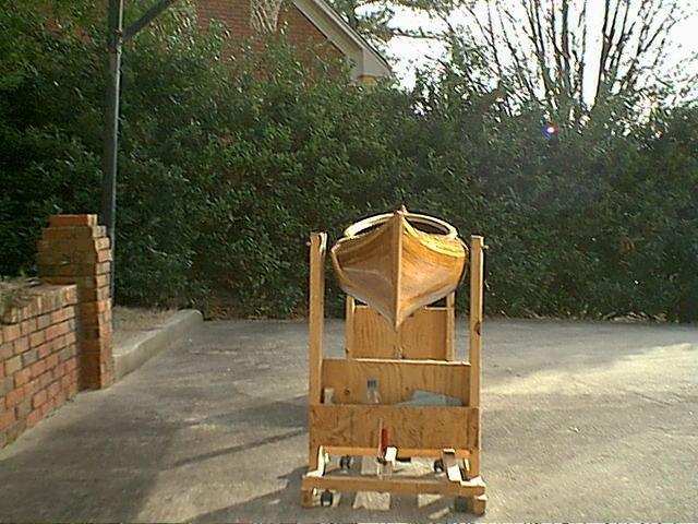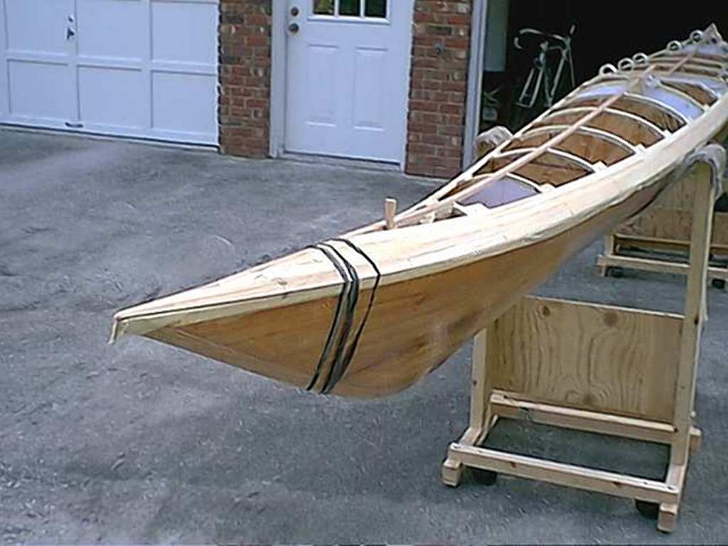 Hull: Forms on a strongback, laying cedar strips, sanding, fiberglassing inside& out.