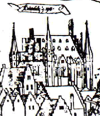 from the 14th century on, not far from the river, the fishmarket, the river and the old borough with its castle of the vicount, later prison, called the Steen.