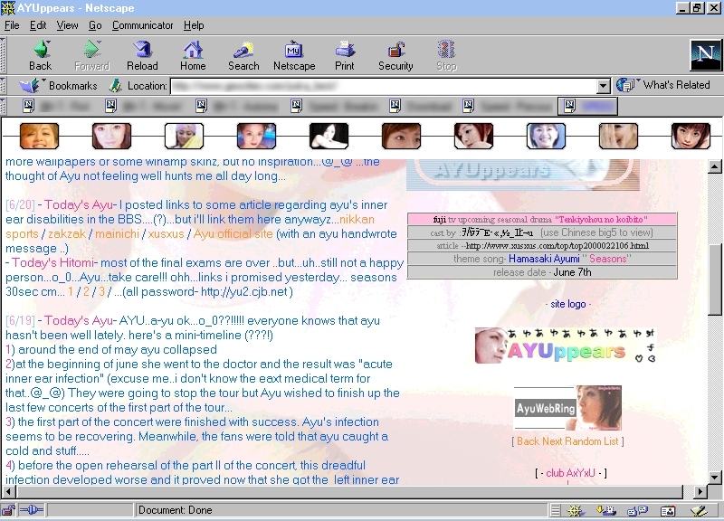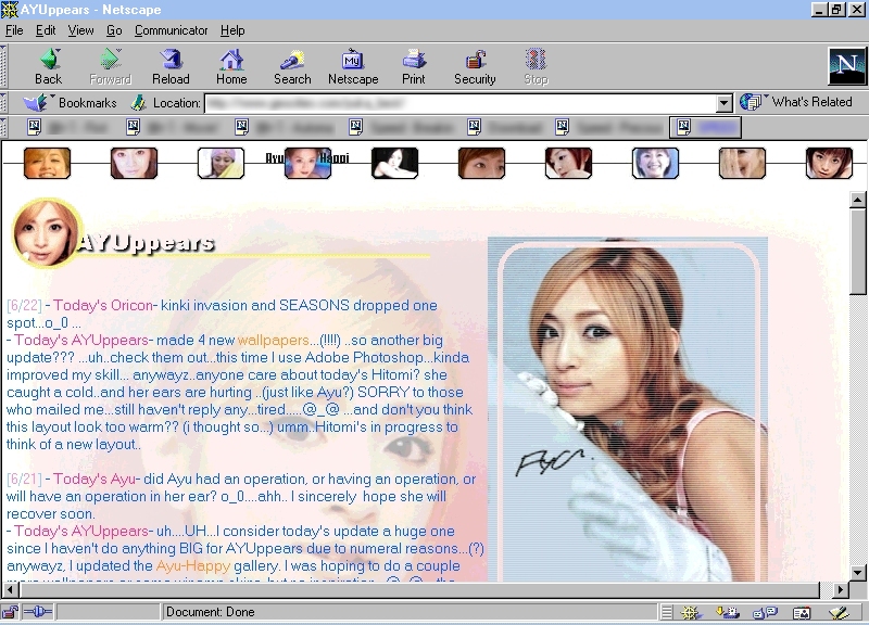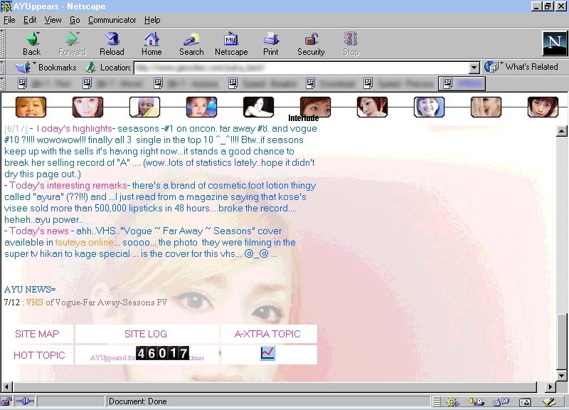 translation, essays and thoughts from fans (which you are more than welcome to donate), and some info/history about webmaster Hitomi and this site AYUppears!! please enjoy this section..^_^ |