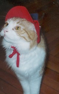 Don't I look cute in my fire kitty hat? Mom just had to include this new pic!