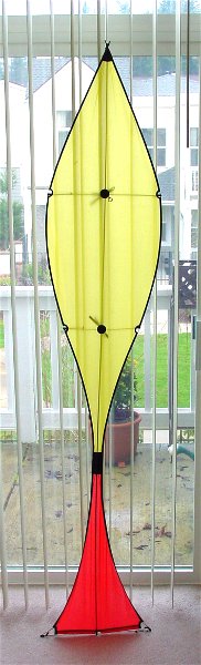 Peter built this kite in 2002 and won 2nd place in the german national kite championship. While he was teaching a class at the 2003 Fort Worden Kitemakers Conference he generously donated this kite to the raffle and I had the good fortune to win it.