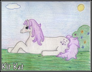 | "Kit Kat" The media used in Kit Kat is pencil, art stix, & colored pencil Her story: Kit Kat decides to relax on this sunny afternoon. Kit Kat was completed on December 23rd, 2003 and took me 3 hours to complete. She was drawn up with pencil then filled in with PrismaColor Art Stix, then she was detailed with PrismaColor Colored Pencil. I like the way Kit Kat turned out. I love her color scheme and her symbol. I had been wanting do to a symbol like that for some time now and finally did it. I hope you enjoy Kit Kat as much as I enjoyed creating her! Back to Colored Pencil Gallery |