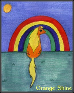 | "Orange Shine" The media used for Orange Shine was pencil, watercolors, and colored pencil Her story: Chasing rainbows is one of Orange Shine's favorite hobbies! Orange Shine was completed on December 10th, 2003. She took me 2 hours to complete. This piece was drawn up with pencil and colored with Grumbacher Watercolors, it was then gone over with PrismaColor Colored Pencils to add detail and some depth. I like her colors, I have always been a fan of G1 Applejack. I like the over all turnout. I hope you enjoy Orange Shine as much as I do. Back to Watercolor Gallery |