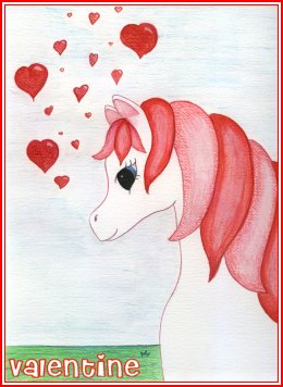 | "Valentine" The media used for Valentine was pencil, watercolors, and colored pencil Her story: Valentine loves everyone and everything in Ponyland. She only comes out around Valentine's Day though. Valentinewas first drawn up with pencil. Then she was colored with PrismaColor Watercolor pencils then detail was added using PrismaColor pencils. This piece as suspose to be part of the Valentines Day Pony Art Contest that the MLP Arena had but I had no access to a scanner to send it in :( Valentine was completed on February 8th, 2004 and was created in 3 hours. I hope you enjoy Valentine. Back to Watercolor Gallery |