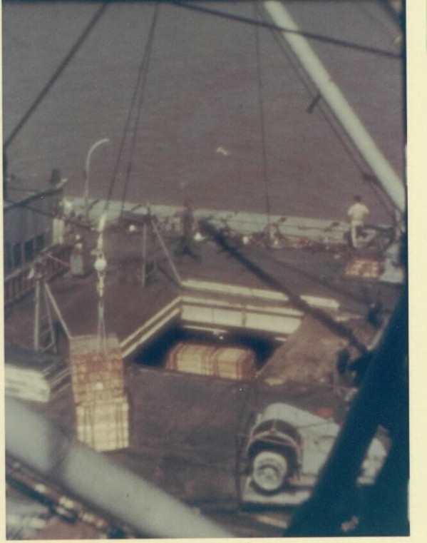 We managed to slowly make our way to a pier and members of another service (the greens give it away) and asked for assistance which they provided after asking what we had to trade. I don’t remember what we had to trade but after negotiating some stuff they lifted the LCVP out of the river by the stern, with a cherry picker, until the prop was clear of the water. A plank was extended out from the pier and we went to work getting the prop cleared.