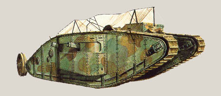 ![]() Mark IV - Male Weight : 28 ton Dimensions : 8.05 x 4.11 x 2.46 mt Armor (max) : 12 mm Range : 56 km Speed (max - route) : 6 km/hr Weapons : n.2 gun 57 mm + n.4 7.7 mm MG Crew : 8 |