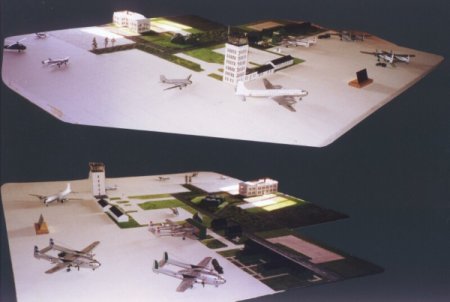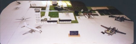 Here are the pictures of the model I was telling you about. I started it after going to Germany in 2000 and seeing the changes. To avoid loosing good thoughts of the place, I started the model. All the buildings on the flight line were from memory, as they were all gone now. The shops are pretty accurate. The control tower is a little off, but resembles a picture I was given by an ex airman from 48/49 time frame. The planes were of the period also.