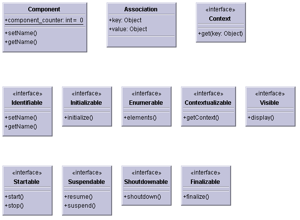 interfaces: Identifiable, Initializable, Enumerable, Contextualizable, Context, Visible, Startable, Suspendable, Finalizable, Printable