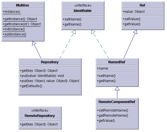 Repository holds set of components. There is always a need to access certain generically useful components, such as instances of "DataClass", etc. Repository is just the right place to put the components into. The Repository is usually initialized at application startup and then various objects are obtaining references to the components held by the Repository. Since the Repository is a multiton instance, there is number of Repository instances, each for distinct application domain.