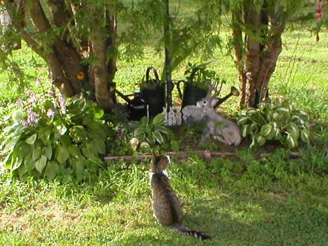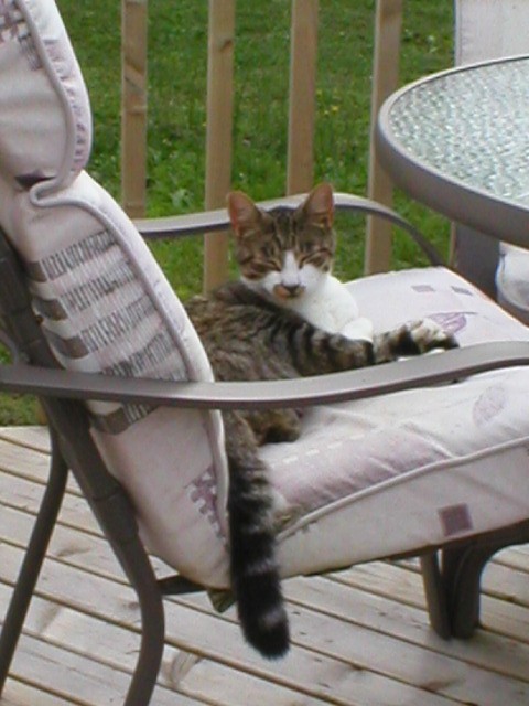 I got him while renting a house in another part of the county, and kept him and Sam both as inside cats. Sam didn't like this, but got used to it after a while. At the house that I was renting, the two cats eventually got used to each other. I even brought my mother's dog to the house once to see how Tyson would react. I kept him in the cat carrier as the dog came into the house. Tyson basically ran from one end of the cat carrier to the other, crashing into the end before turning around and doing the same thing on the other end. Eventually the animals got used to each other and the dog sort of protected the cats from larger dogs (such as my sister's boxer).