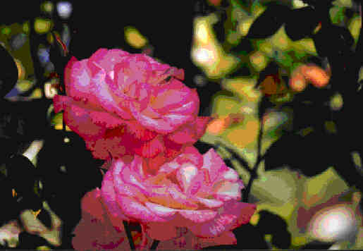 A beautiful hardy climbing rose which blooms from spring to fall. 4" blooms begin as deep pink tinged with yellow and open to a paler pink and white.