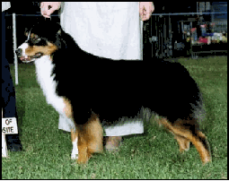 Isabelle is AKC/CKC/ASCA Ch Briarbrooks The Point Is (Ch Kaleidoscope Case In Point X Ch Briarbrook Silver Anniversary). She is a lovely black tri girl with tons of personality! She has a real zest for life and is rarely seen without a toy in her mouth. Isabelle is OFA good, elbows clear, and eyes CERF yearly.