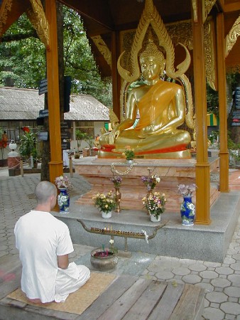 | Siddhartha Gautama was born 563 BC. in what is now Nepal. His father, a King/Lord, was told by fortune tellers that if his son remained with the world, he would become a great conqueror. If, on the other hand, he forsook the world, he would become a redeemer. Faced with this, his father decided to steer his son toward the former destiny. Siddhartha grew up sheltered and surrounded by wealth and luxury – insulated from suffering. He married his cousin and had a child. In time, Siddhartha glimpsed the suffering and death of human beings outside the palace walls. This new awareness awakened a compassion in him and, at the age 29, he left his palace, family, and possessions with the goal of discovering the truth about life and death. He first sought spiritual guidance from famous Brahmans (Hindu Priests). Next, he searched elsewhere and joined a band of ascetics and, for the next six years, practiced self denial and non-action in an attempt of learn the human condition. After withering to a walking corpse and nearly dying of starvation, he realized that the life of self negation was as extreme and unproductive as his earlier life of incessant luxury. He came to believe in the Middle Way – Moderation between the extremes of self denial and indulgence. Siddhartha now devoted himself to rigorous thought and concentration. One evening, he came to the Bo Tree and resolved to sit beneath it and mediate his way to perfect truth. He feel into a deep trance and after many hours was able to detach from his senses, emotions, and desires. Next, he entered a state of pure inner consciousness and awareness and ultimately non-conscious ecstasy. Here, he grasped the cause of suffering, the pathway around suffering (the 4 Noble Truths) , and the nature of supreme peace (Nirvana). That day Siddhartha became the Buddha (the enlightened one). He went on to share his insights and gathered a large number of disciples. Many of his teachings and the religion they formed, were a reaction against the perversions of the established religion of the time (Hinduism). Onto the religious scene – corrupt, degenerate, and irrelevant, matted with superstition and burdened with rituals – came the Buddha. * He preached a religion devoid of authority. He challenged each individual to do his own religious seeking – “do not accept what you hear by report, do not accept tradition, do not accept a statement because it is found in books, nor because it is the saying of your teacher.” * He preached a religion devoid of ritual and said that they were trappings – irrelevant to the obtaining Nirvana. * He preached a religion that skirted speculation. On such matters as whether the soul is the same as the body, whether one exists after death. * He preached a religion devoid of tradition. “Do not go by what is handed down, not on the authority of your traditional teachings” * He taught a religion of intense self-effort. A God or Gods could not be relied upon. * He preached a religion devoid of the supernatural. He felt that appeal to supernatural and reliance on it were shortcuts, easy answers, and simple solutions that could only divert attention from the hard, practical task of self-advance. The most important key to understanding the path of enlightenment is the set of Buddha’s teachings know as the Four Noble Truths: 1.) Human life is suffering. 2.) The cause of suffering is craving or attachment – the selfish craving for private fulfillment. Sensations like smells, sounds, tastes, bodily and intellectual pleasures enter in through the body and give rise to craving. Sensual experiences themselves are not the causes of suffering, for they are inherently neutral phenomena, instead, it is the clinging or desire for these experiences that leads to suffering. The desire for self at the expense of all other forms of life is the problem. When we are selfless, we are free. 3.) The cure for suffering is non-attachment or the cessation of selfish craving (by overcoming the egotistic drive for private fulfillment). 4.) The Fourth Noble Truth prescribes how this can be accomplished, the way out of our suffering is the Eightfold Path. First, it is important to point out that the Eightfold Path is not an inflexible moral law dispensed form some otherworldly Judge nor is it an unbending absolute duty. Instead, Buddha claimed that ethical decisions are dependent upon the context in which they arise. The same activity committed in two different contexts or by two different people can have two different implications. These eight steps are preceded by a preliminary step he does not include in the list but refers to often – The right association (with others). 1.) Right Views / Right Understanding of life and life’s problem. Critical thinking and intellectual rigor is a virtue. Ignorant faith is nothing without logical thought. 2.) Right Intent 3.) Right Speech 4.) Right Conduct / Action. 5.) Right Livelihood / Occupation 6.) Right Effort 7.) Right Attentiveness / Mindfulness. “All we are is a result of what we have thought.” Self examination, self understanding, self awareness 8.) Right Concentration intense concentration helps lead to direct perception of life and what freedom from worldly suffering is actually like. Basic Buddhist Concepts * Buddha’s concerns were practical and therapeutic, not speculative and theoretical. * Afterlife He did not grant his followers descriptions or promises of the afterlife. Instead, he wanted to introduce people to a different way of life – a life focused on obtaining Nirvana. Nirvana’s literal meaning is extinction. The extinction of the finite self. It is the end of all suffering and the elimination of every aspect of the only consciousness we have known. It does not follow that what is left will be nothing. When asked for a description of the afterlife Buddha stated that it was “incomprehensible, indescribable, inconceivable, unutterable.” It would be ignorant to imagine t