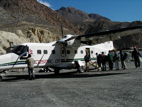 | She did have a point. For the whopping sum of $61 US I could fly up to Jomson (2,700 meters / 8,800 feet) thus bypassing the grunt work of hiking up the foothills (6+ days up and down) and get right into the cool stuff. | |||||||||||||||||||||