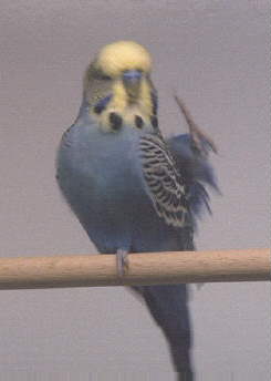 This is Spring (54T-23-98) as a barhead. She's a Spangle Yellow Face Cinnamon Cobalt, half sister to Perdu, and 3rd Best Hen in Show at the 1998 Motor City Bird Breeders Show.