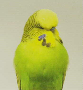 This is Luke, our second Champion (54T-05-97). He took Best Yellow Face in Show at the 1997 Motor City Bird Breeders Show in Warren, Michigan. Not our best bird, but by far our most seasoned competitor who has been shown since he was a barhead and continues in 1999 to place in the Novice division. Luke finished his show career by taking first place in his section of the Novice Division at th 1999 All American in Orlando. He can look forward to a pleasant retirement. He has been in more shows than any Battery B bird.