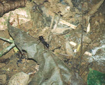 | This solitary critter is called a Bullet Ant. He is about an inch long and if he stings you, count on days of searing pain. We found this guy on the trail and gave him plenty of room. | |||||||||||||