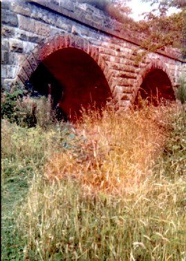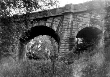 | Viaduct of long dismantled Kelvin Valley Railway as it crosses track bed of the Blane Valley Railway. 1975 |