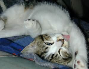 This cutie is Oscar as a kitten. He was adopted from the RSPCA at Christmas 2000. While he was lucky enough to find a good home, many others don't. Please remember to spay and neuter your cats - there aren't enough homes for all the strays. Oscar has had his "operation", but doesn't like to talk about it much! |