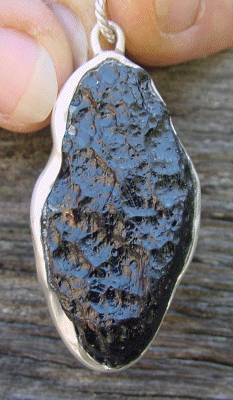 Your piece is mounted in Fine Silver with a Sterling Silver jump ring. I find that these gems bring much truth to the wearer's life. She is a strong grounding piece and invokes Universal Earth for the wearer. Wishing on a Falling Star is a time honored practice in most ancient cultures so if you drop Her or fall down while wearing Her ~ remember to make your Wish. She is definitely outta this World!