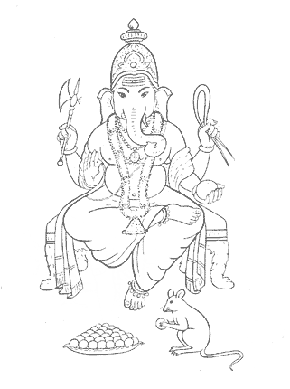 According to most Hindu legends, he is the son of Parvati and Shiva, or just Parvati. The most well known story tells that Parvati created Ganesha from dust and ointment while she was bathing so she could have someone to guard her. Upon discovering this stranger telling him he couldn't see his own wife, Shiva cut the boy's head off. Parvati was so upset that her husband promised he'd put the head back on. However, Shiva could not find the boy's real head, but instead encountered a kindly bull elephant who was willing to sacrifice his life to save the boy. Grateful, Shiva took it, and in return, he granted the old elephant moksha, meaning that he attained Nirvana, thus he would not be reincarnated again. Shiva then gave the boy this new head and named him Ganesha and promised that he'd be worshiped before any undertaking. Other versions of this story said that Parvati made Ganesha from clay because she was lonely and that Shiva wanted an animal head all along. Yet another version says that Shiva created Ganesha as such a beautiful boy that Parvati cursed him and gave him an elephant head. According to a sect of Hinduism known as Ganapathya, Ganesha is the supreme god and the universe itself. When Brahma, Shiva, and Vishnu came into existence, they knew that they were supposed to create (Brahma), destroy (Shiva), and preserve the world (Vishnu), but they did not know exactly how to start the process. Ganesha swallowed them and in his belly, the three gods could see a projection of the universe. After reminding the gods to meditate on aum, he freed them, and the process of creation began. The elephant-headed god's popularity is apparent even outside India. In sculpture, Ganesha had a female form named Ganeshini, but no myths tell about her. In Japan, he was often transformed into elephant-headed twins known as the Kangi-ten. In some Buddhist myths, he was a villain trying to stop the flow of Buddhism. In Tibetan legend, Ganesha was known as Log den, lord of obstacles, and showed the father of Phagpa that his son would spread Buddhism to Mongolia.  |