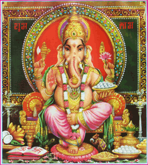 Genesha is a prominent elephant-headed Hindu god who is worshiped before all great undertakings, including the worship of other gods. Ganesha is a merry god who's always willing to lend a helping hand -- or four! He's also known as Ganapati and 106