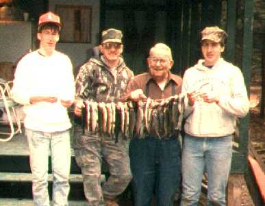 Proudly displaying their catch of the day, further investigation revealed these fish had been purchased from an Amishman on the Back Mountain Road. |