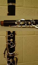 Hmm. . . I just discovered that none of the two pics show the register key, which is outrageously important. You see, the clarinet, like almost all wind instruments, can 'overblow,' which means the sound resonates at the next harmonic up, resulting in a higher pitch despite the same fingering. Unlike the saxophone's cylindrical bore, however, the clarinet has a conical bore, and it overblows at a 12th instead of an octave. So if I finger a low C, it will overblow to a G. The register key helps the overblowing from the chalameau (the lowest register, so-named because forefather of the clarinet back in 1600s or something is called a chalameau. It cannot overblow, and only has, like, one octave range or something. Very sad) to the clarion (the second octave register). From the chalameau to the clarion, all the notes are quite stable. But when you go over to altissimo (which is everything above the concert Bb one leger line above the staff) you can use funky fingerings and stuff because the same fingering no longer produces pitches in the tempered scale. You would open up the left index finger, and that would act as a 'second register key' of some sort, allowing the next series of notes to be overblown.