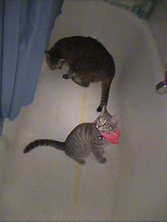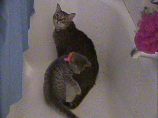 This practice just isn't good enough for Cleo and Munchie. They also spend considerable time in the bathtub.