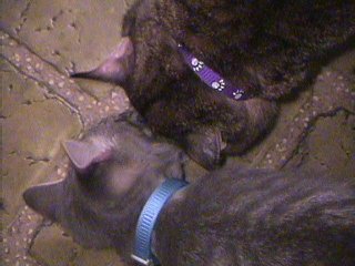 A nice make up hug from Munchie solves all ills between the two kitties.